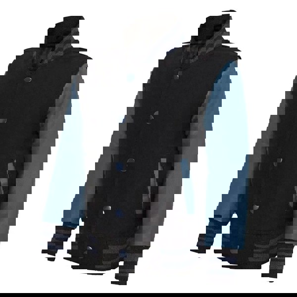 * Stylish Design: The jacket features a classic varsity bomber silhouette, combining black and navy colors to create a modern yet sporty look suitable for various occasions