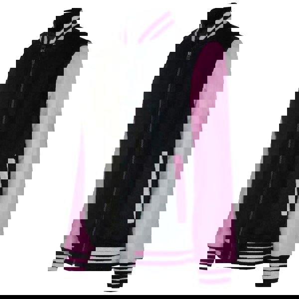 * Stylish Design: This varsity bomber jacket features a modern black and pink color scheme, making it a trendy addition to any young wardrobe. The combination of wool body and real leather sleeves enhances its fashionable appeal