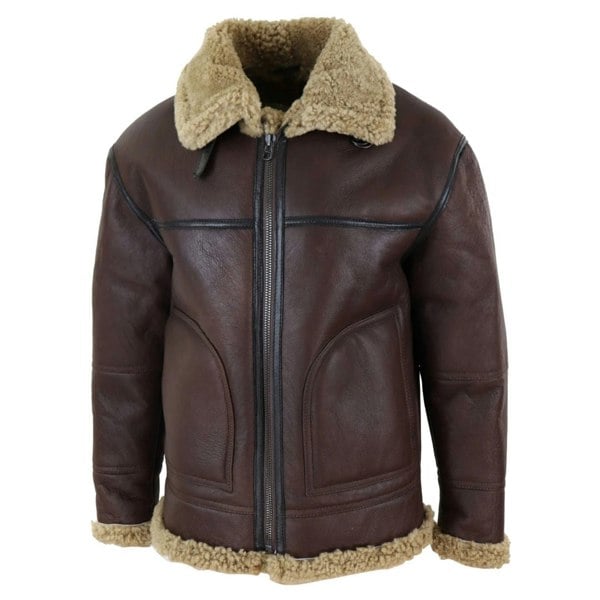 • Mens Genuine Shearling Sheepskin Flying Jacket Based On The Original WW2 Pilot Jacket