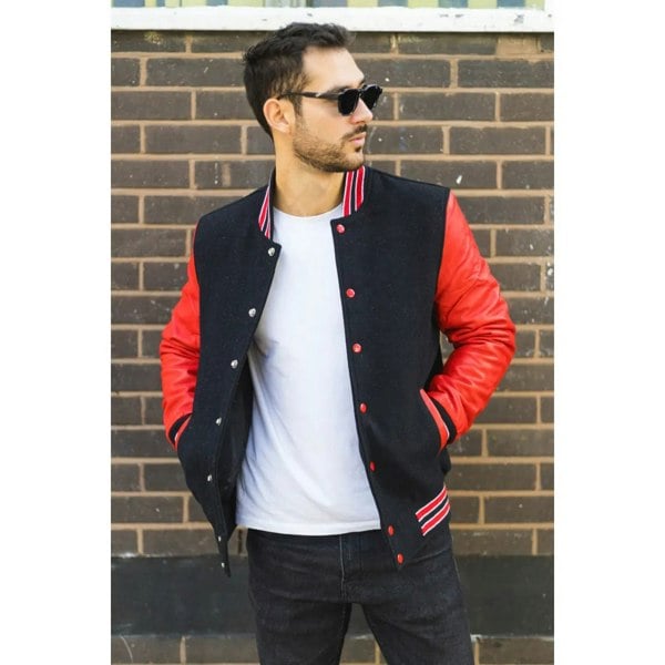 * Premium Material Construction: The jacket features a high-quality wool body for warmth and durability, paired with real leather sleeves that offer a sleek, stylish contrast and enhanced durability