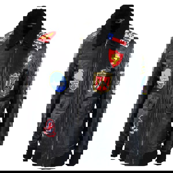 Leather Company Men's Black Topgun Maverick Jacket Pilot Bomber US Badges Black Fur Tom Cat