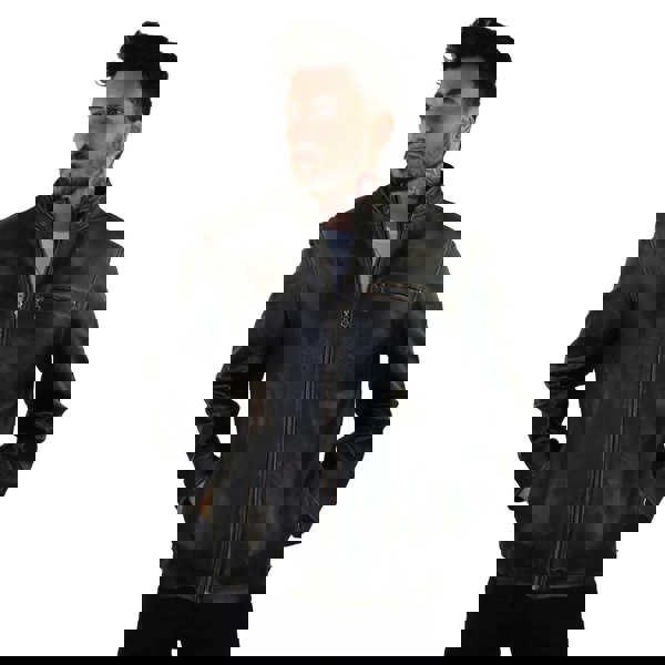 • Classic Nehru Style Collar Biker Jacket, Casual / Smart Casual Wear Vintage Effect
