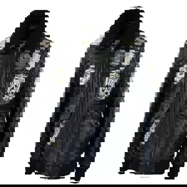 • Waist Length With Detachable Fur Collar US Map Flag Badge & Top Gun Traditional Badges On Front & Sleeves