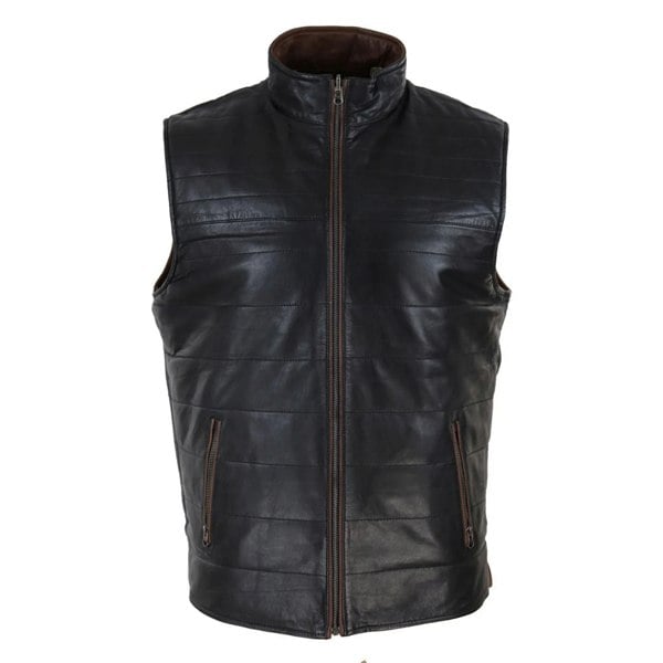 • Mens Black Brown Reversible Real Leather Gilet Waistcoat