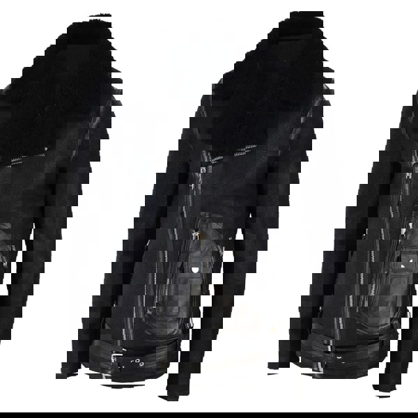 • Mens Cross Zip Black Natural Sheepskin Jacket With Matching Black Sheepskin Lining & Belted Front