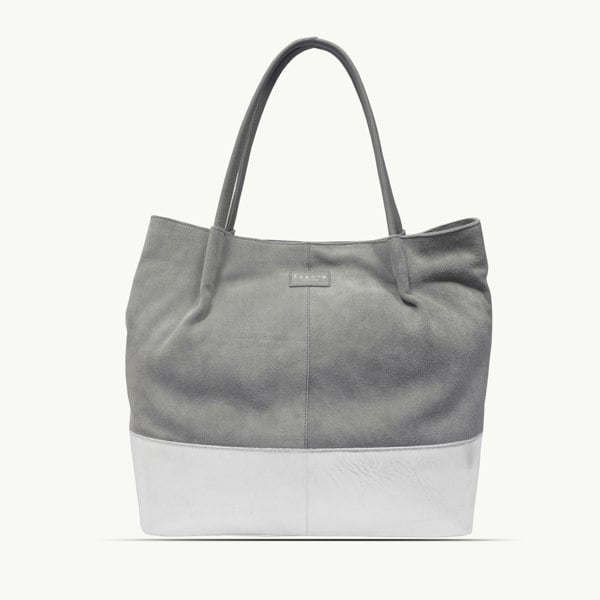 'DONNA' Grey and Metallic Silver Real Leather Unlined Designer Shopper Bag