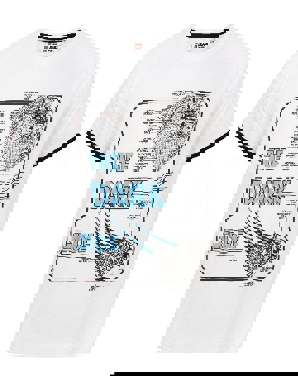 The perfect addition to any little Lego Star Wars fans wardrobe, this Lego Star Wars The Dark Side boys t-shirt is packed with awesome design features sure to keep your little ones happy! The eye-catching print across the front of the tee depicts a bold diagram-style design including a lego version of the iconic Death Star and a fleeing Tie Fighter