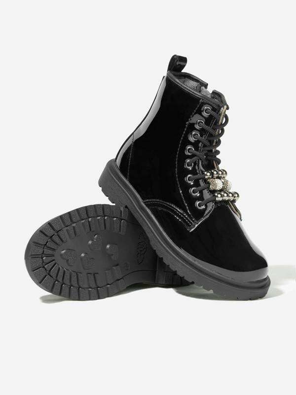 The Lelli Kelly Girls Willow Patent Boots in black bring a high-gloss patent finish to an AW2025 footwear choice. A delicate bow detail adds a neat, decorative touch, keeping the look polished and simple.