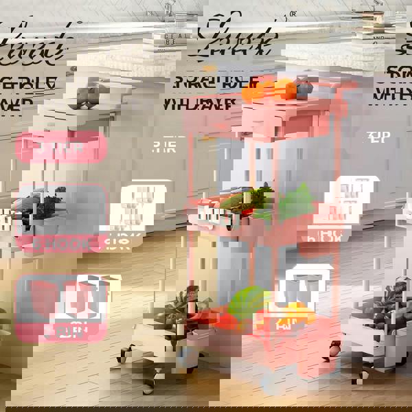 Organise your home and office with the Levede 3-tier trolley a versatile rolling storage cart designed for maximum convenience. This utility cart with wheels comes with a smooth drawer 3 spacious tiers 2 detachable storage bins and 6 hooks offering flexible storage for every need. Whether used as a kitchen trolley bathroom storage cart beauty trolley laundry organiser or office utility cart it keeps essentials neatly stored and within reach.