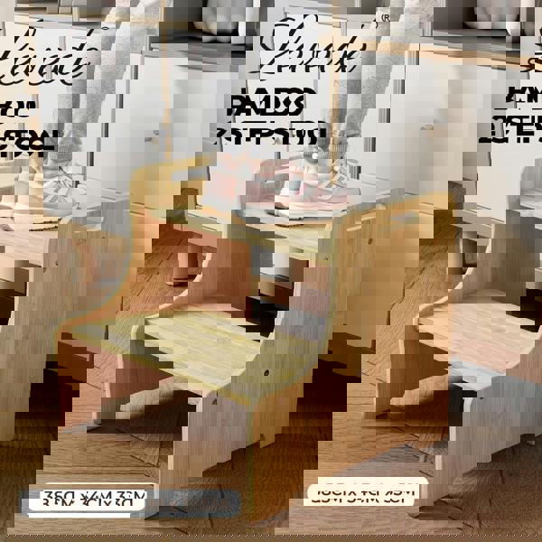Upgrade your home with the Levede Bamboo 2-Tier Step Stool a sturdy eco-friendly solution for reaching high shelves cabinets or bathroom fixtures. Crafted from 100% natural bamboo it offers a durable water-resistant surface that’s easy to clean and ideal for both kitchen and bathroom use.