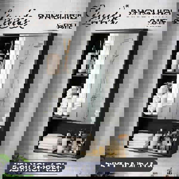 Designed to keep bathroom essentials neatly organised, the Levede bathroom mirror cabinet combines a mirrored cupboard with open side shelving in a modern, wall-mounted format. The mix of closed and open storage keeps everyday items within easy reach while helping maintain a clean, uncluttered look in the bathroom.