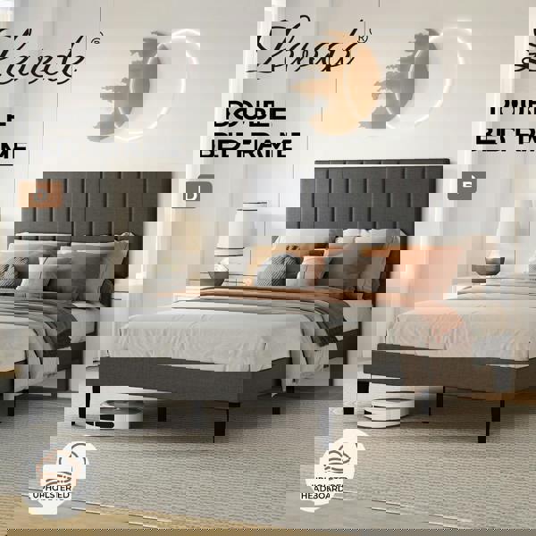 Transform your bedroom with the Levede upholstered bed frame in Double size combining a durable MDF and plywood platform bed frame with breathable linen upholstery and supportive 18D foam. This Levede bed frame is ideal as a double bed frame for everyday comfort offering excellent stability with a modern linen upholstered finish. The elevated legs allow convenient robot-vacuum cleaning while the vertical-panel headboard adds elegance and completes your modern bedroom décor. A reliable and stylish Levede bed frame built for long-term use.