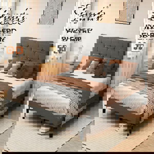 This Levede upholstered bed frame features a modern minimalist design with high density foam padding and durable linen fabric making it suitable for various bedroom styles. The wooden slat base offers strong support and long lasting stability. The under bed storage space maximises room organisation and improves daily convenience. The frame includes a complete hardware kit for quick and simple assembly. A reliable after sales service is also provided for added peace of mind.