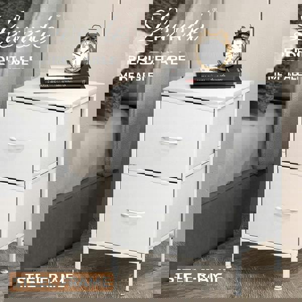 Levede Bedside Table – White Bedside Table with 2 Drawers for Bedroom & Living Room Storage