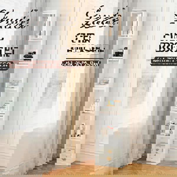 This tall slim bookcase features 6 open shelves giving you plenty of space to organise books CDs DVDs comics plants or display your favourite ornaments. With its modern wood shelving design and compact footprint (30×24×158. 5cm) it is ideal for the living room bedroom study or home office. Perfect for creating a tidy clutter-free space while adding a touch of contemporary style.