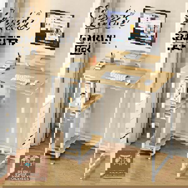 Upgrade your workspace with this computer desk designed for small home offices bedrooms and study areas. Measuring 100 cm × 50 cm × 76 cm it offers a compact yet highly functional layout. The desk features two reversible storage shelves for books consoles and accessories allowing installation on either the left or right side to suit your room layout. A raised monitor stand improves screen visibility and supports an ergonomic sitting posture during long hours of work or study.