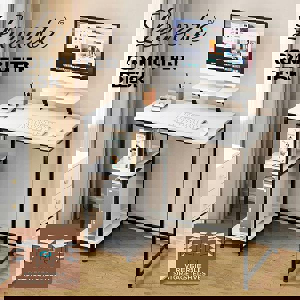Upgrade your workspace with this computer desk designed for small home offices bedrooms and study areas. Measuring 100 cm × 50 cm × 76 cm it offers a compact yet highly functional layout. The desk features two reversible storage shelves for books consoles and accessories allowing installation on either the left or right side to suit your room layout. A raised monitor stand improves screen visibility and supports an ergonomic sitting posture during long hours of work or study.