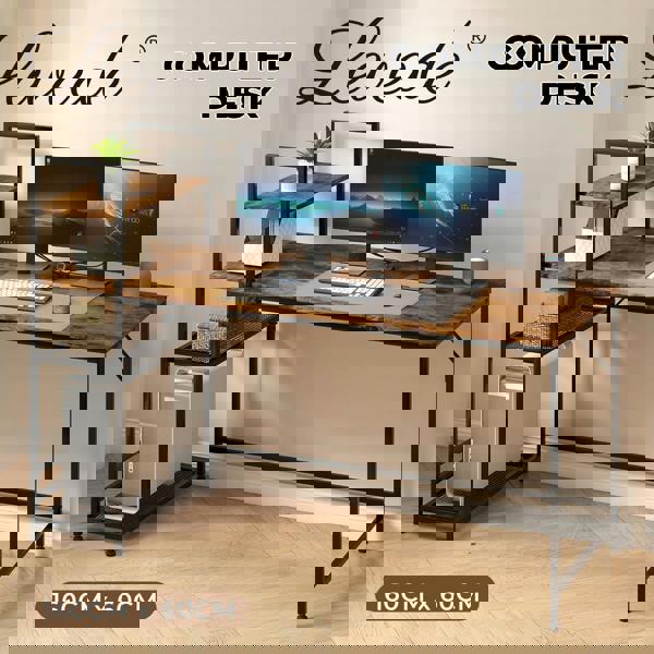 Upgrade your home office or study area with this large 160cm computer desk with a practical 4-tier shelf. Made from E1-grade particle board with a waterproof and scratch-resistant finish it pairs with a reinforced steel frame for long-lasting durability. The wide tabletop offers ample space for monitors laptops and office accessories while the shelving can be installed on either side to maximise storage flexibility. Designed with thickened edges smooth surfaces and floor-protecting pads it ensures safe and comfortable daily use. With clear structure labelled parts and a detailed manual the desk is easy to assemble. Ideal for home office bedroom study room and multi-purpose use.