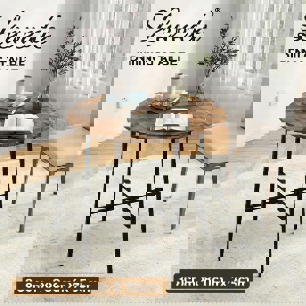 Crafted with a durable 15mm melamine-finished tabletop and reinforced steel legs this Levede small dining table offers excellent stability and a static load capacity of up to 100kg. Adjustable foot pads ensure the table stays level on uneven floors while protecting surfaces from scratches—ideal for daily use as a kitchen dining table or round kitchen table.