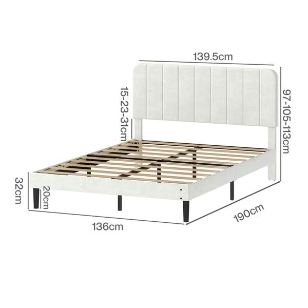 Levede Double Bed Frame Upholstered Platform Bedframe Adjustable Headboard White