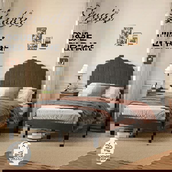 The Levede upholstered bed frame in Double size offers a perfect balance of comfort stability and modern aesthetics. Designed with a scalloped linen headboard and a durable MDF/plywood base this Levede bed frame provides strong mattress support while adding a stylish touch to any contemporary bedroom. The soft 18D foam headboard ensures increased comfort and the raised legs make this linen bed frame easy to clean underneath. Built to deliver long-lasting performance this upholstered bed frame is an excellent choice for everyday use.