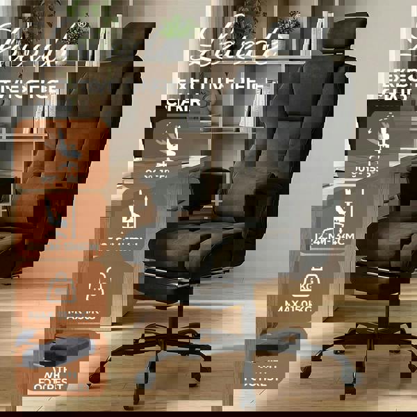 Upgrade your home office or executive workspace with this premium ergonomic office chair. Featuring soft suede fabric upholstery high-density moulded foam cushioning and a reinforced steel frame it delivers superior comfort and durability. Fully adjustable seat height armrest and headrest allow a personalised fit while a 360° swivel lockable recline (90–155°) and heavy-duty five-star steel base enhance flexibility and stability for long work hours.