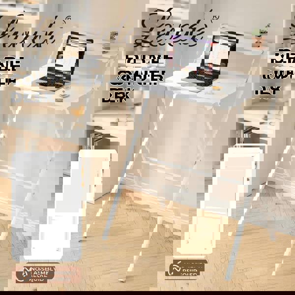 This foldable computer desk offers a practical solution for small spaces combining a no-assembly design with a sturdy and comfortable workspace. It arrives fully assembled and can be used straight out of the box saving time and effort. The desk features a spacious tabletop providing ample room for daily tasks. The integrated monitor shelf enhances vertical storage and keeps the desktop tidy. With a folding design it can be easily stored under the bed inside a cabinet or behind a door when not in use. Built with a durable 15 mm particle board top and a powder-coated steel frame it supports up to 50 kg while remaining lightweight for effortless movement between rooms. Ideal for bedrooms living areas and small apartments.