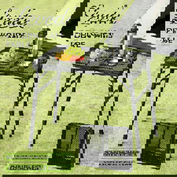 Featuring a foldable design with two adjustable heights (42cm/66cm) the table adapts easily to different outdoor needs. The metal mesh tabletop is heat-resistant prevents water buildup and wipes clean with ease ideal for outdoor cooking and dining.