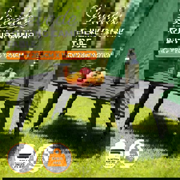 The Levede folding camping table is a compact mini desk designed for outdoor trips picnics and travel. Made from durable aluminium alloy it offers strong weight support while keeping the structure lightweight for daily carry. The table opens and folds in seconds with no tools required. Its dual-height design lets you switch between 10 cm and 16 cm simply by flipping the legs. The black finish gives a sleek and modern look suited for camping hiking beach days and garden use. A drawstring storage bag is included for easy transport.
