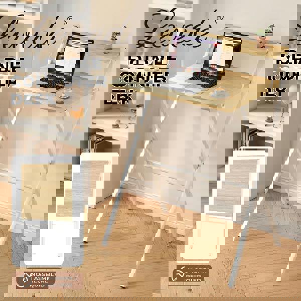 This foldable computer desk offers a practical solution for small spaces combining a no-assembly design with a sturdy and comfortable workspace. It arrives fully assembled and can be used straight out of the box saving time and effort. The desk features a spacious tabletop providing ample room for daily tasks. The integrated monitor shelf enhances vertical storage and keeps the desktop tidy. With a folding design it can be easily stored under the bed inside a cabinet or behind a door when not in use. Built with a durable 15 mm particle board top and a powder-coated steel frame it supports up to 50 kg while remaining lightweight for effortless movement between rooms. Ideal for bedrooms living areas and small apartments.