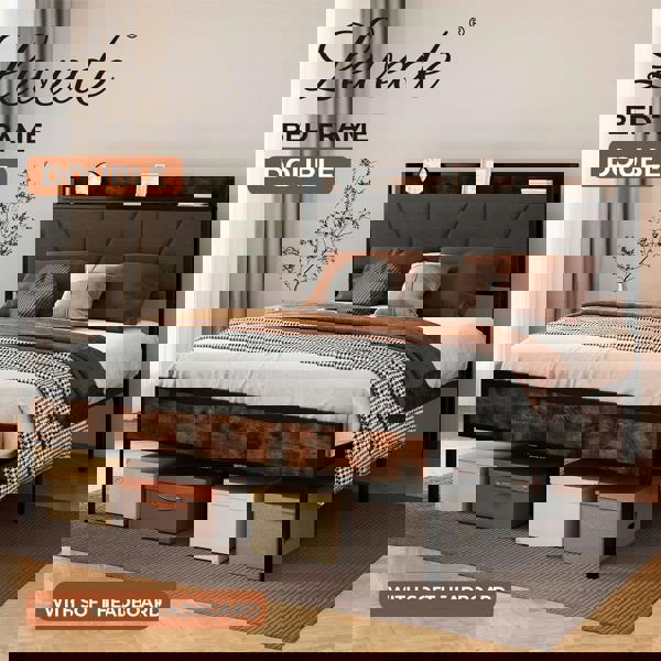 This Levede double bed frame features a reinforced metal structure for enhanced stability and long-lasting support. The upholstered headboard includes a practical storage shelf helping maximise small bedroom space. Linen fabric offers a breathable and modern look creating a comfortable resting area. The 22. 15cm under-bed clearance provides extra room for boxes or organisers. Noise-free construction ensures a quiet sleeping experience.