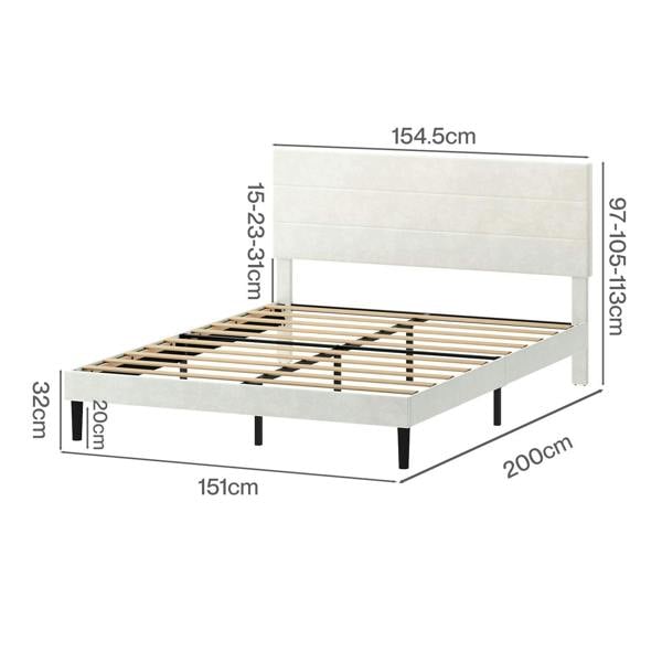 Levede King Bed Frame Upholstered Headboard Platform Velvet Foam White Fabric