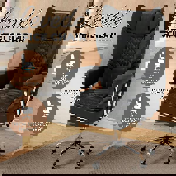 Experience superior comfort and durability with this heavy-duty ergonomic office chair. Designed with a reinforced metal frame and high-density foam it provides exceptional support for users up to 300 lbs. The seat height adjusts from 51–61cm to suit various heights while the reclining backrest offers a relaxing angle between 90° and 135°. Built-in spring padding enhances softness and resilience for long sitting sessions. The sturdy PU leather finish adds a premium touch and 360° swivel wheels allow smooth mobility across floors. With an adjustable footrest and padded armrests this chair is perfect for working gaming reading or relaxing—combining comfort strength and style for everyday use.