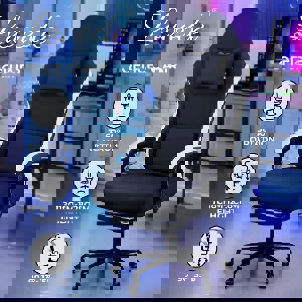 Levede Office Desk Chair Fabric Gaming Recliner Adjustable Height Swivel Black