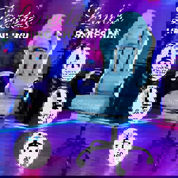 Levede Office Desk Chair PU Gaming Recliner Adjustable Height Swivel Blue