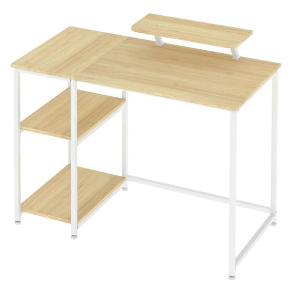 Upgrade your workspace with this computer desk designed for small home offices bedrooms and study areas. Measuring 100 cm × 50 cm × 76 cm it offers a compact yet highly functional layout. The desk features two reversible storage shelves for books consoles and accessories allowing installation on either the left or right side to suit your room layout. A raised monitor stand improves screen visibility and supports an ergonomic sitting posture during long hours of work or study.