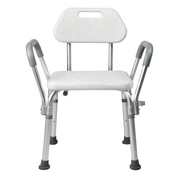 Featuring six adjustable seat heights (42–52cm) this shower chair adapts easily to different users and bathrooms. The push-button locking system ensures stability while nano rubber feet with internal steel plates enhance grip on wet surfaces. Soft EVA armrests improve comfort and the removable PE backrest allows flexible use. Drainage holes and a built-in shower head holder add everyday convenience.