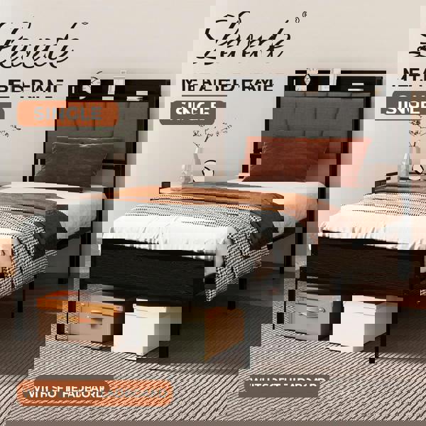 This Levede single bed frame features a reinforced metal structure for enhanced stability and long-lasting support. The upholstered headboard includes a practical storage shelf helping maximise small bedroom space. Linen fabric offers a breathable and modern look creating a comfortable resting area. The 22. 15cm under-bed clearance provides extra room for boxes or organisers. Noise-free construction ensures a quiet sleeping experience.