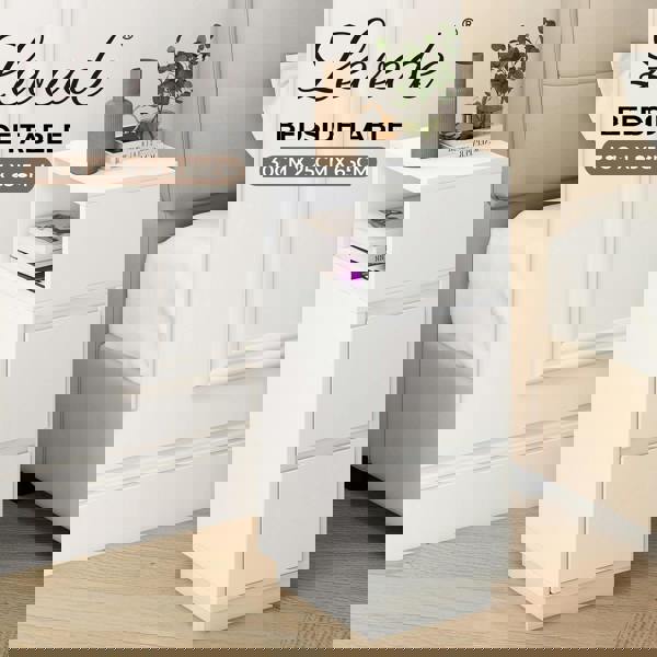 This Levede slim bedside table is designed for modern homes where space is limited but storage is essential. Its narrow footprint makes it ideal for bedrooms living rooms apartments and compact spaces fitting neatly beside beds sofas or chairs.