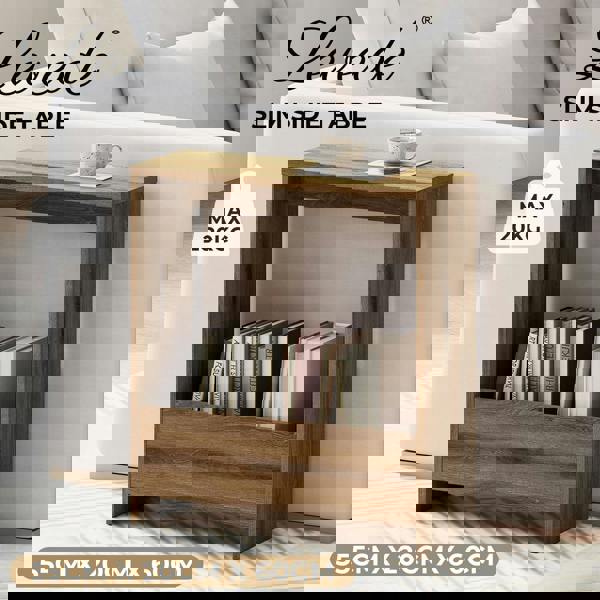 This Levede slim side table is designed for homes that need practical storage without compromising on style. With a compact footprint of 55 x 20 x 60cm it works perfectly as a sofa side table accent table or narrow end table in living rooms and bedrooms where space is at a premium. Constructed from strong 15mm particle board with a PU paper surface and PVC edge banding this wooden side table delivers everyday stability. The rich dark oak finish adds depth and warmth to interiors while the integrated magazine storage keeps reading materials and essentials neatly contained.