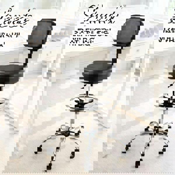 Equipped with a wide height-adjustable footrest and a 360-degree rotating base this Levede chair also includes smooth quiet caster wheels for effortless movement. With a sturdy structure and a maximum load capacity of 150 kg it functions well as a rolling stool chair makeup chair or bar stool chair.