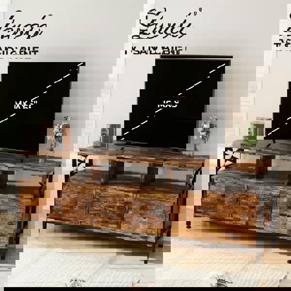 Upgrade your living room with this Levede TV stand cabinet designed for TVs up to 65 inches. Featuring a practical combination of 3 drawers for concealed storage and 3 open shelves for displaying décor or media devices it offers both style and functionality. The industrial look highlighted by the black steel frame rustic brown panels and X-shaped side bars adds a bold visual touch to any home.