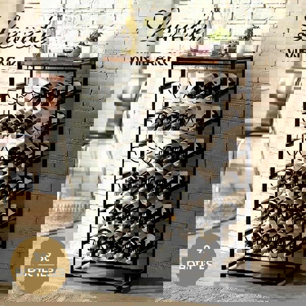 Crafted to elevate both storage and style this Levede wine rack offers a smart and elegant solution for organising your wine collection at home. Designed as a sturdy freestanding wine rack it combines a durable black metal frame with a richly finished wooden top making it a functional centrepiece for modern and industrial interiors.