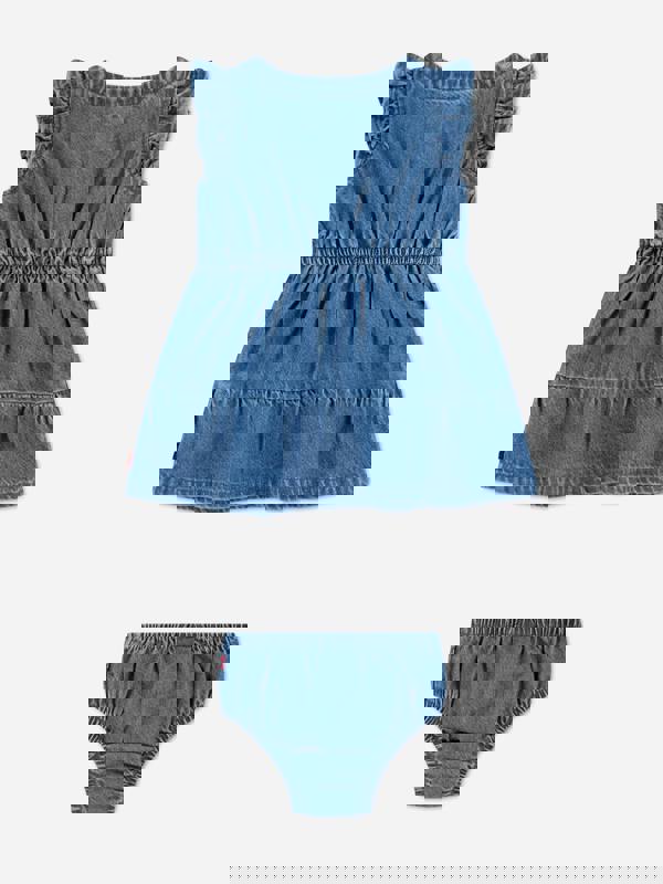 This Levi's Kids Wear dress brings a classic button-up look to a baby girls’ wardrobe. Finished in blue, it pairs flutter sleeves with a button-up front for a clean, traditional silhouette. The soft, premium material keeps the feel comfortable for everyday wear, while the simple fastening supports easy dressing.