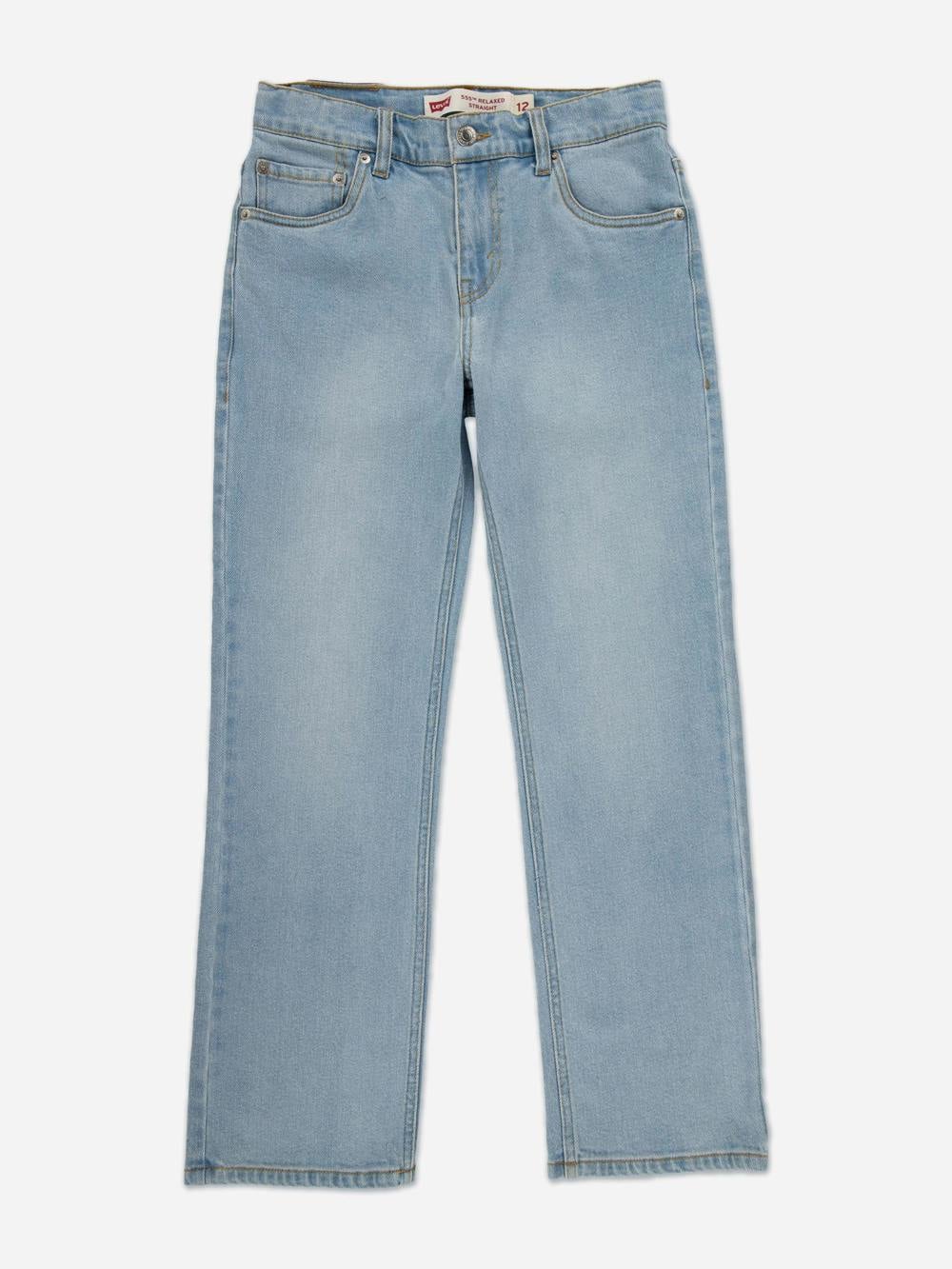 These Levi’s boys’ 555 relaxed straight jeans come in light blue denim with golden stitching. A regular style with a relaxed straight leg, they offer a clean, classic look for everyday wear.