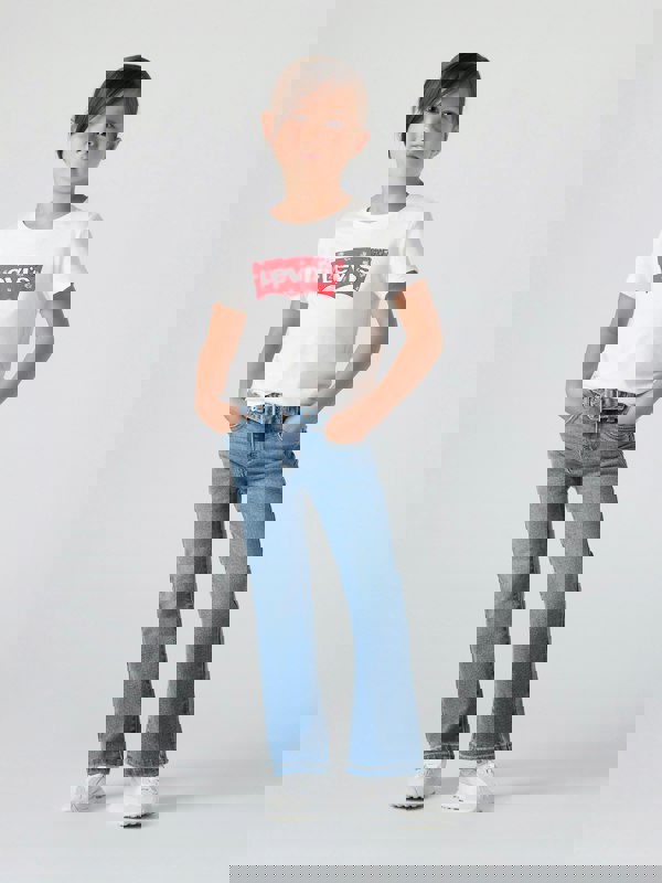 These Levi’s girls’ flared rodeo jeans bring a classic denim look with a regular rise and traditional five-pocket styling. Finished in blue with golden threading, they include belt loops and a matching belt for a complete look. A button and zip fastening keeps the design practical and easy to wear.