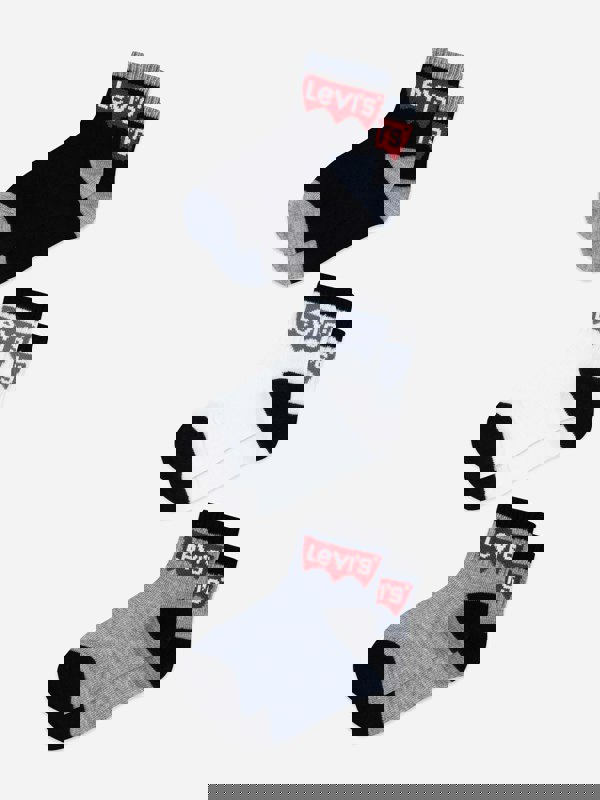 This Levi's Kids Wear sock set includes three pairs of mid cut socks in black. Each pair carries the Levi's batwing logo for a recognisable branded finish.