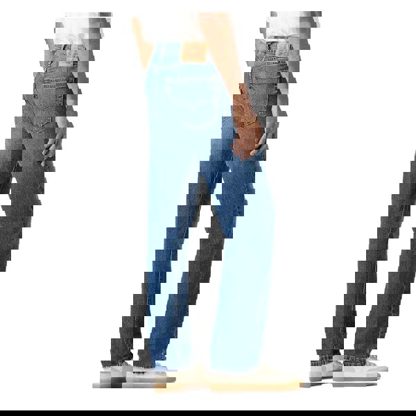 Levi’s 505 jeans in blue denim with a straight leg and regular fit. Made from a cotton-rich blend with added elastane for stretch, this pair is finished with classic five-pocket styling and belt loops. A concealed zip fly and button fastening keep the front clean, while branded details include a logo patch and branded tab.