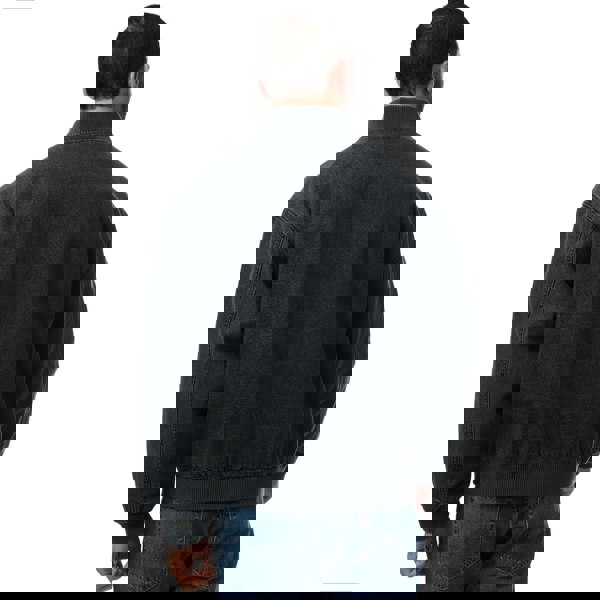 This Levi’s men’s varsity jacket comes in black with a plain finish and a standard fit. It has a banded ribbed collar and long sleeves, finished with ribbed cuffs for a clean, structured look. A press stud fastening runs through the front, keeping the silhouette simple and easy to wear for everyday layering.