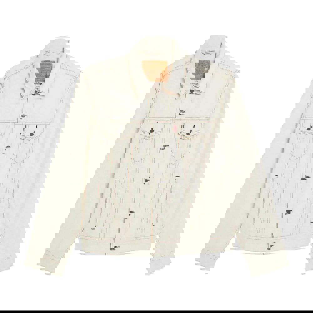 This Levi’s trucker jacket is made from a cotton and linen blend and comes in a cream finish. A relaxed fit and long sleeves give it an easy shape for everyday wear, finished with a point collar and button fastening. The design includes logo detailing and a practical pocket layout, with chest pockets and side entry pockets for essentials.